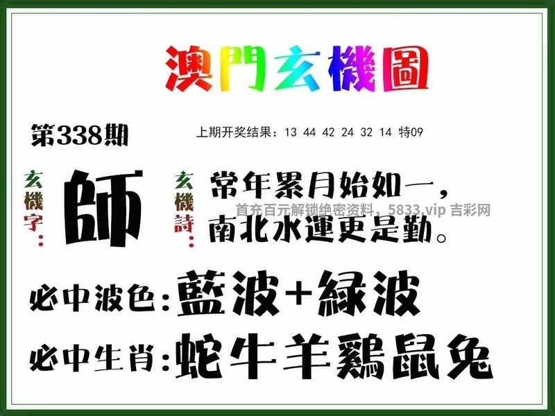 马猴兔】地【羊蛇虎狗】开:牛17准